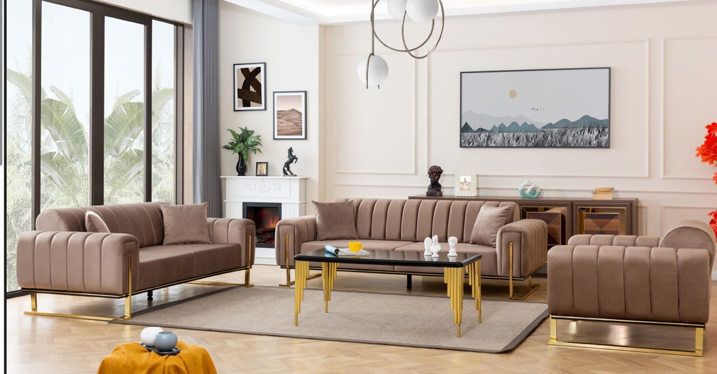 Ürün içeriği: 3 + 2 + 1 takımdan oluşmaktadır. | Ürün iskeleti: Gürgen, Kavak, Kontraplak dır. Kumaş Bilgisi: Yönsüz Kadife, Babyface, Keten, Nubuk vb. İsteğe bağlı kumaştan yapılabilir, fiyat farkı ödemesi yapılaraktan. Tüm renk seçenekleri mevcuttur. Sünger: 32 Dansity Soft sünger kullanılmıştır. | Sırttan yatırmalı yatak olma özelliğine sahiptir. Ayaklar: Metal