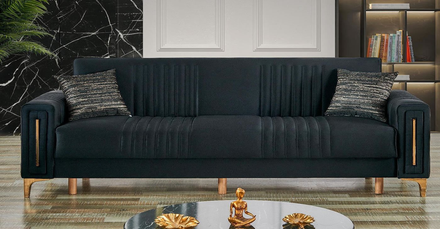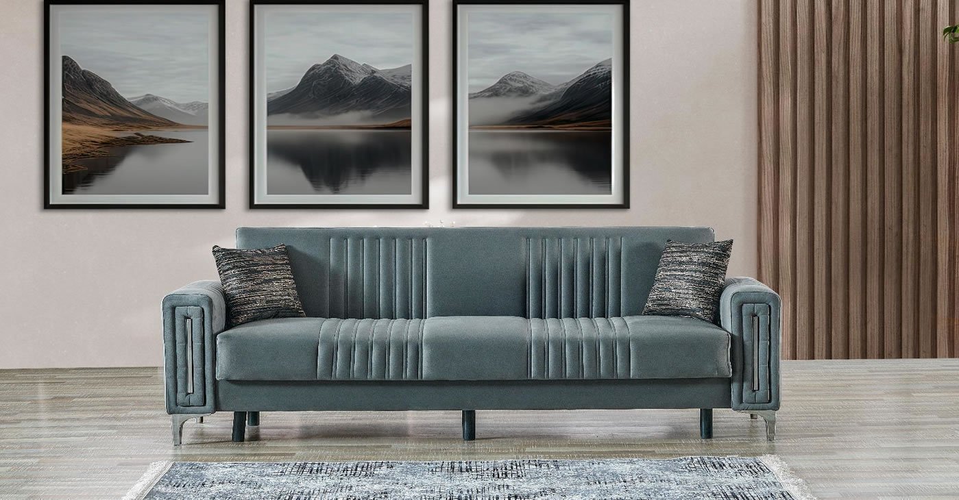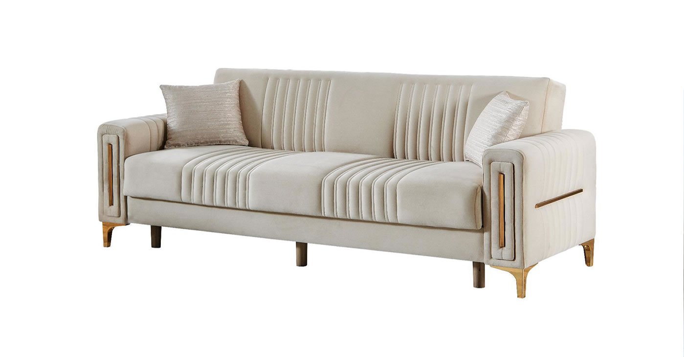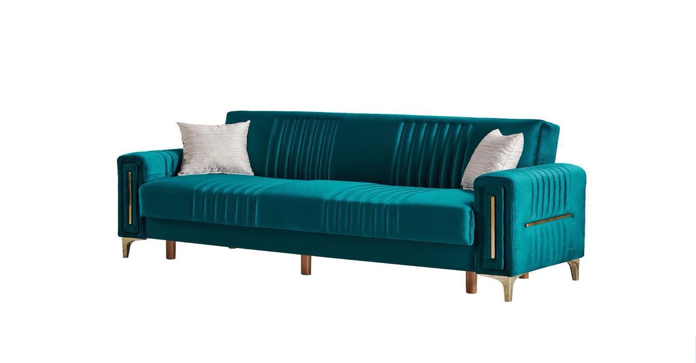 Ürün içeriği: 1 Adet Üçlü Kanepe dir. | Ürün iskeleti: Metal Kasa Profil & Suntalam dır. Kumaş Bilgisi: Babyface & Yönsüz Kadife. Tüm renk seçenekleri mevcuttur. Herkül yay kullanılmıştır. Oturum süngeri orta serttir. Ayaklar: Plastik. | Uzunluk 230cm / Oturum derinliği 60cm / Yükseklik 93cm /  Oturum yüksekliği 48cm / Ayak yüksekliği 12cm / Yatak ölçüsü 110*190