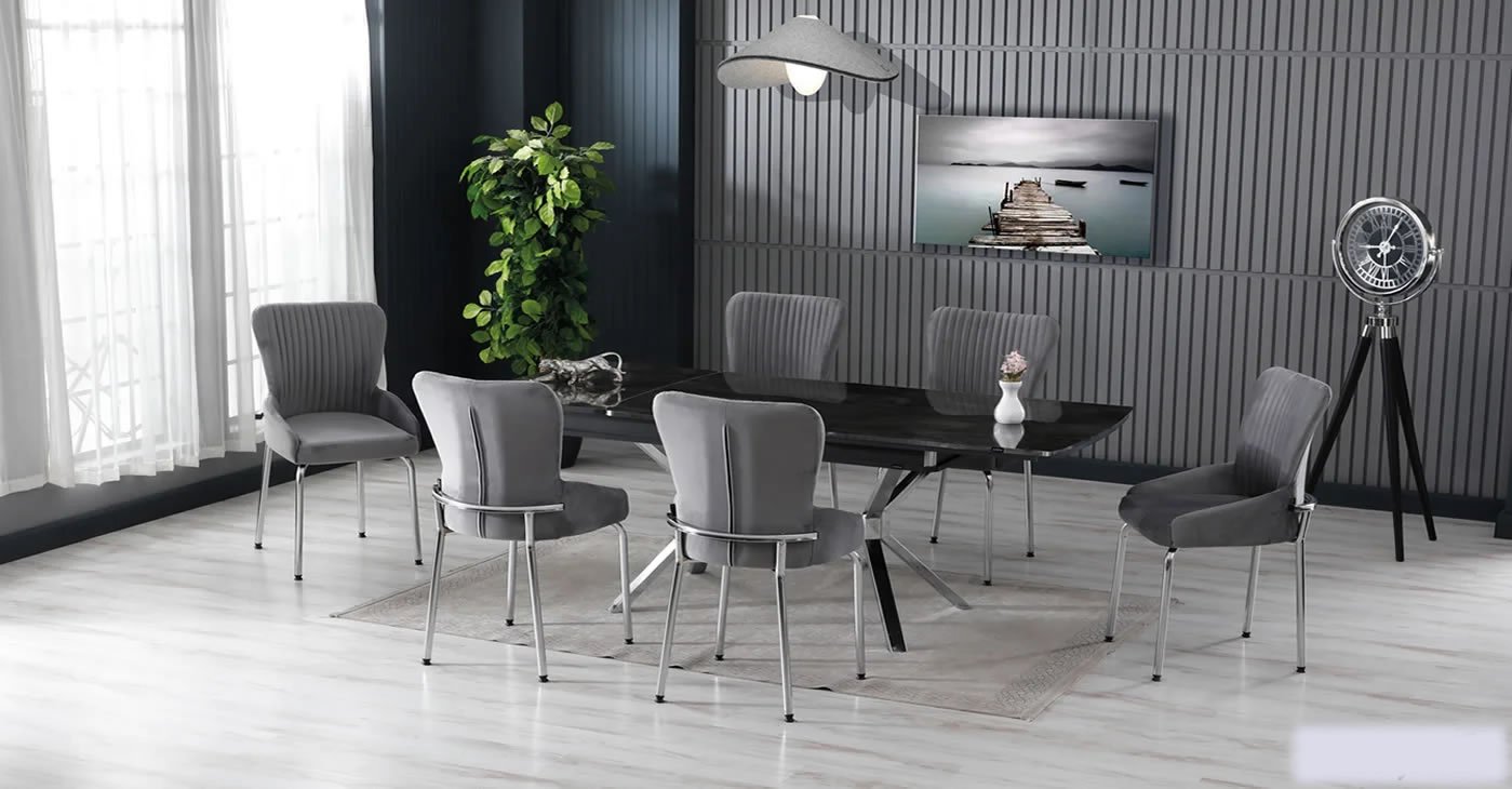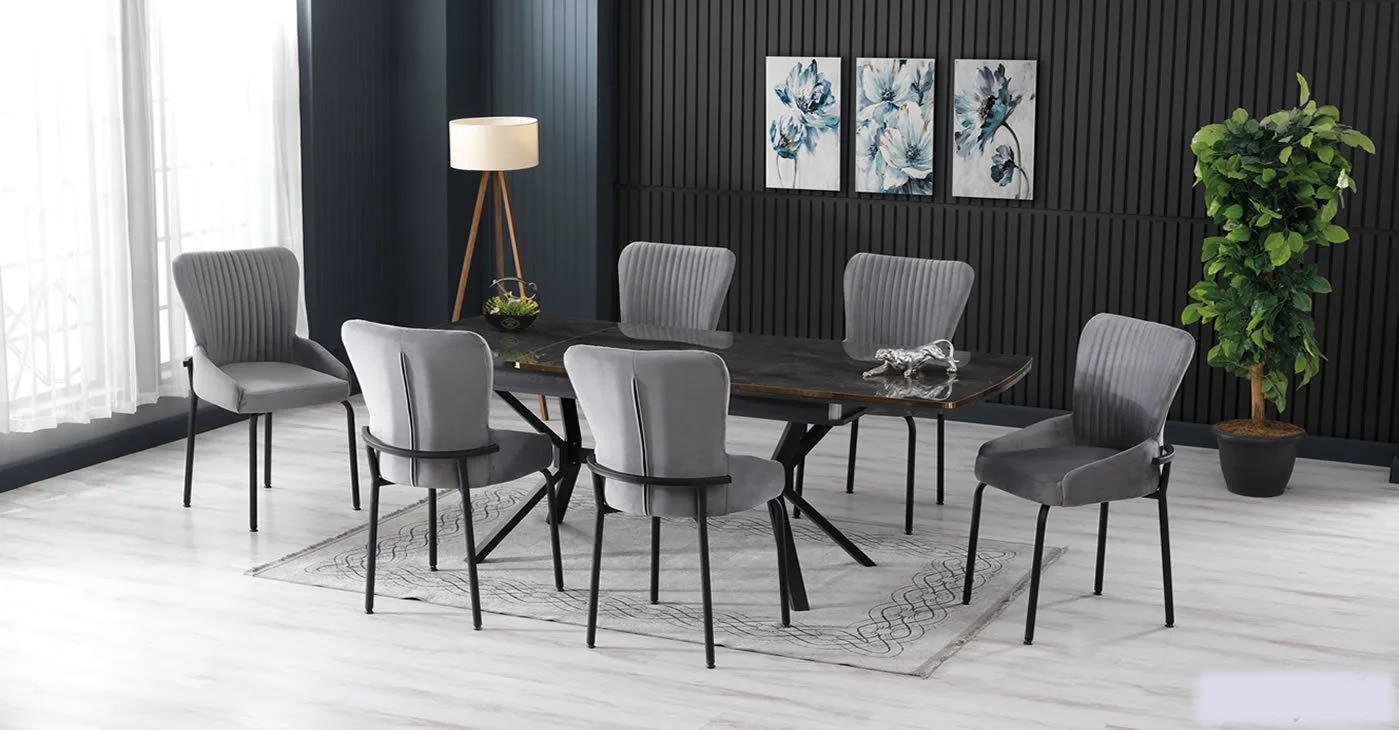 Ürünümüz: MDF Glossmax Tabla Masa, 6 Sandalye dir. Ürün Boyutu: Kapalı 80x130 CM - Açık 175x80 CM | Ürün malzeme detayları resimlerde mevcuttur. Silinebilir babyface kumaş, masa ve sandalye tüm renk seçenekleri mevcuttur. Sandalye ek istenirse adet fiyatı: 4.850 TL dir.